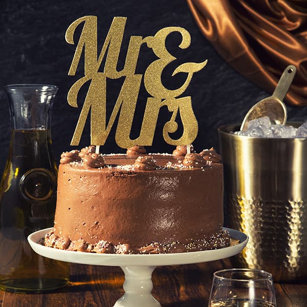 There’s no real wedding without a gorgeous wedding cake. But if you want it to be as memorable as it is tasty — you’ll need to make sure that the cake topper perfectly fits into your wedding theme. You want something as glitzy and stylish as you are; which is why this gold glitter “Mr and Mrs” cake topper is just what you need! Use it for the perfect finishing touch to an already awesome wedding cake.
