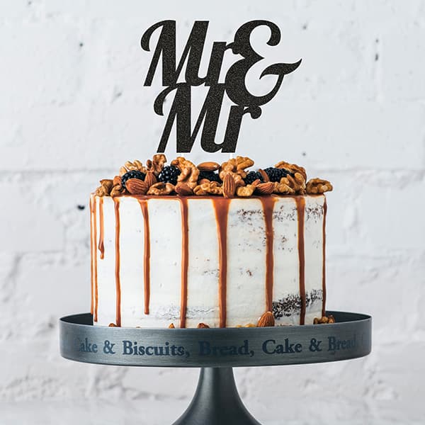 This Black Glitter Mr & Mr Cake Topper Is The Perfect Finishing Touch To Your Wedding Cake.