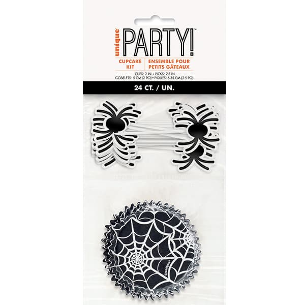 Black And White Spider Web Cupcake Kit, Ideal For Your Halloween Party.