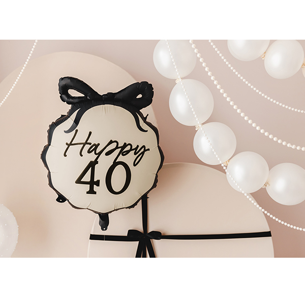 PartyDeco Black And Cream Happy 40th Birthday Pill Bow Wholesale Shape Foil Balloon.