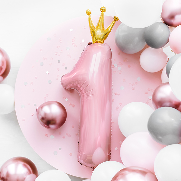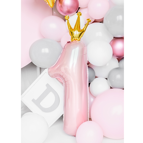 PartyDeco Metallic Light Pink With Gold Crown Number 1 Shape Wholesale Foil Balloon.
