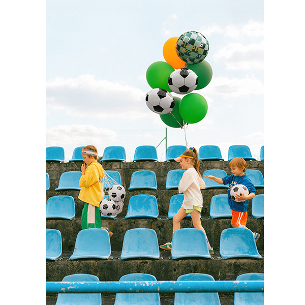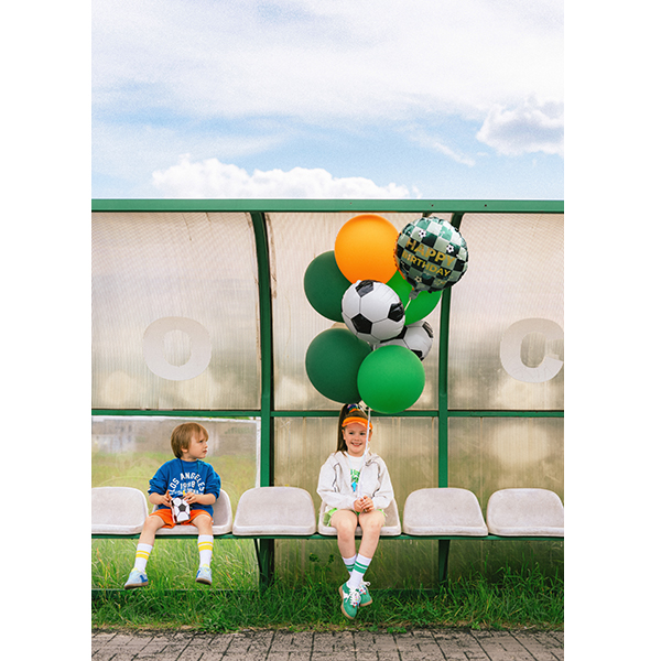PartyDeco Foil Balloon with Happy Birthday text and footballs Wholesale Helium Foil Balloon.