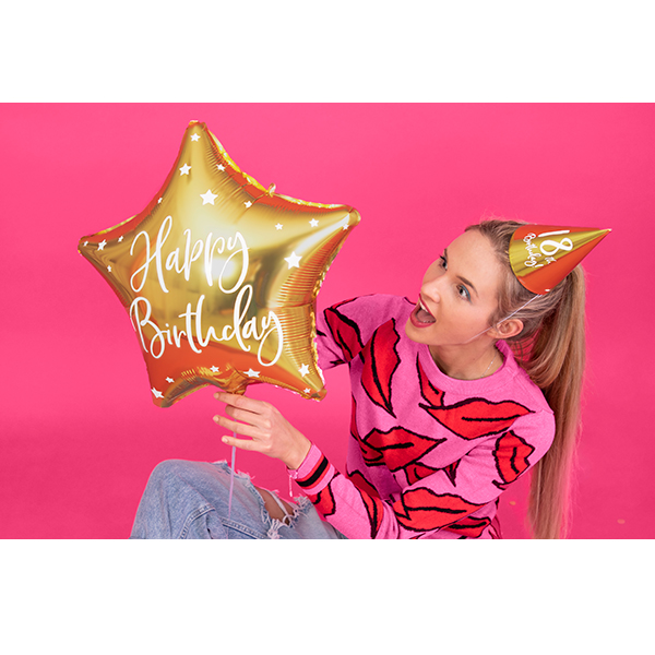 PartyDeco Happy Birthday Glossy Gold Star Shape With White Inscription Wholesale Foil Balloon.