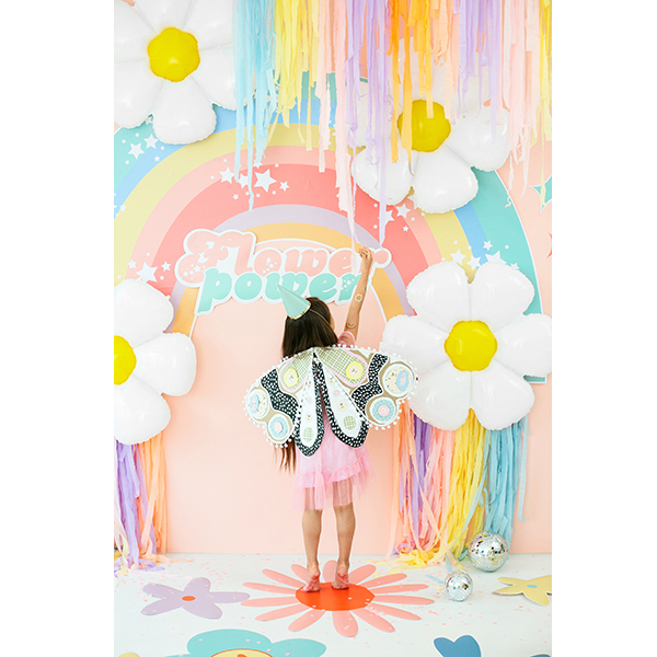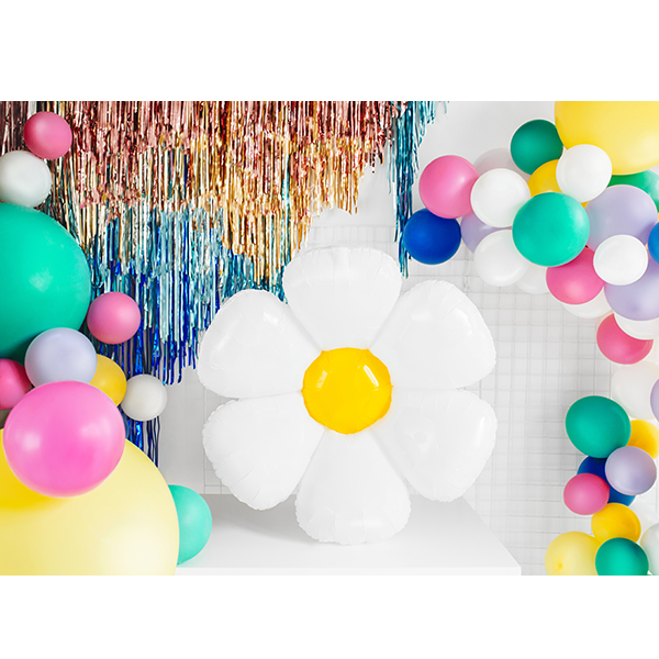 PartyDeco Glossy White With Yellow Print Daisy Shape Wholesale Foil Balloon.