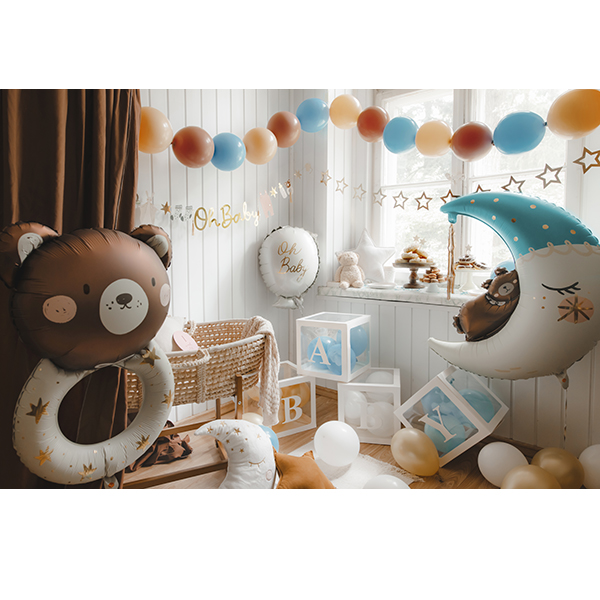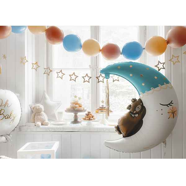 Teddy On The Moon With Light Blue Elements And Tassel Gold Detail Wholesale Supershape Foil Balloon.
