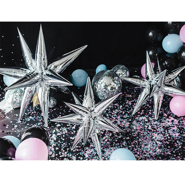 PartyDeco Metallic Silver 3D Star Wholesale Foil Balloon. These Star Burst Foil Balloons Are Ideal For Decorating Birthday Parties, New Years Eve Events And Much More.