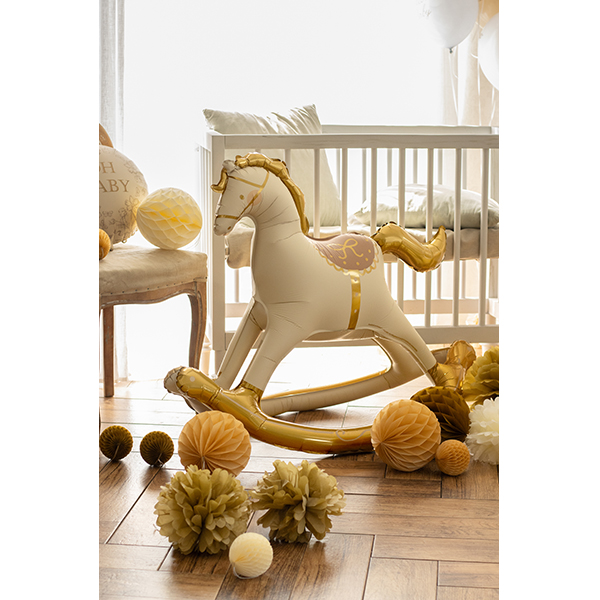 PartyDeco Standing Cream And Gold Rocking Horse Wholesale Shape Foil Balloon.