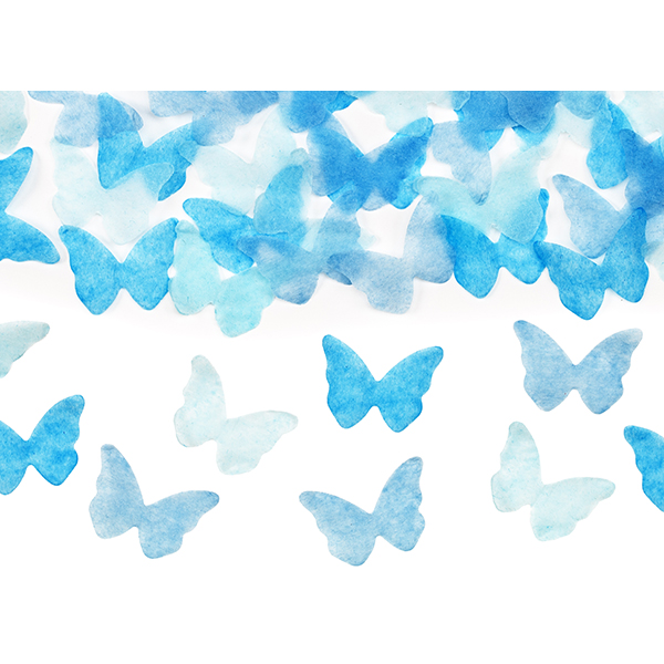 PartyDeco Hello Baby Blue Butterflies Confetti Cannon. Confetti cannon shooting out paper butterflies in 3 shades of blue. The