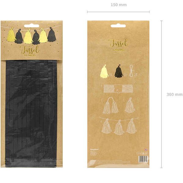 This Stunning Black And Mirror Gold Mix Tassel Garland Is A Great Way To Add Finishing Touches To Your Balloon Designs Or Table Decorations.