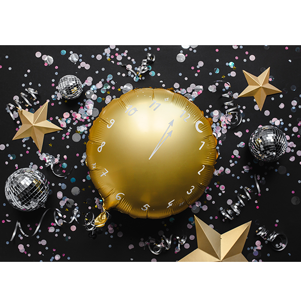 PartyDeco Gold Clock With White Print New Year Wholesale Foil Balloon.