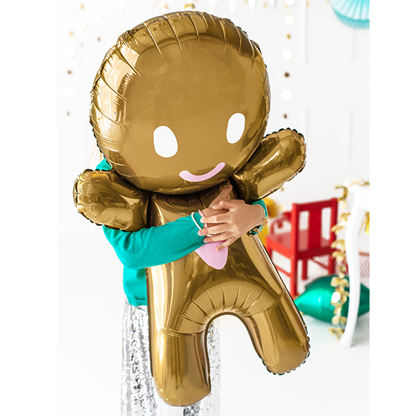 PartyDeco Glossy Gingerbread Man In Gold With White And Pink Print Shape Wholesale Foil Balloon.