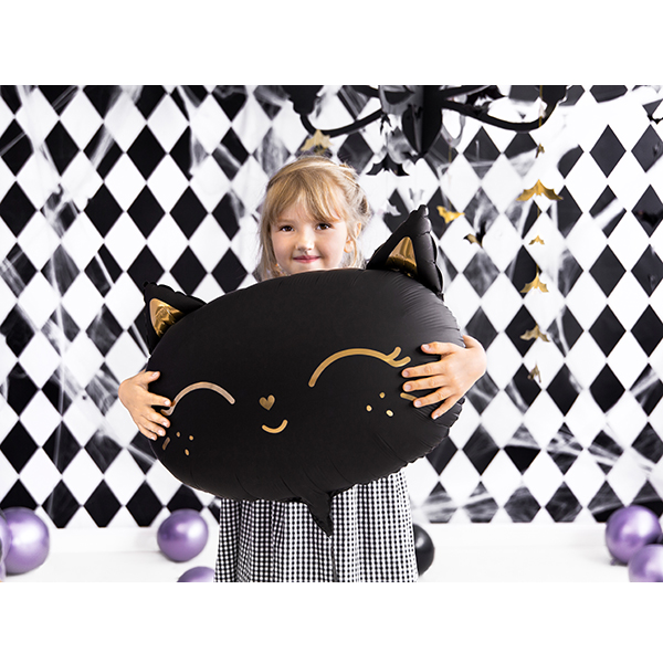 PartyDeco Black Cat Head With Gold Print Wholesale Foil Balloon. This Cat Head Foil Balloons Is Ideal For Decorating Kids Halloween Parties.