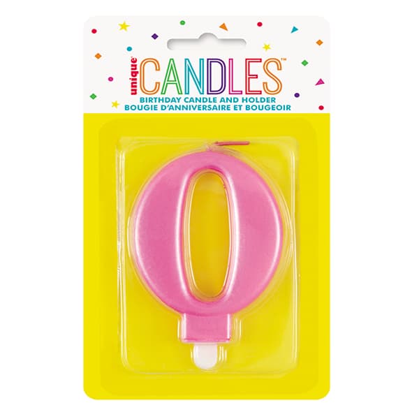 Metallic Pink Number 0 Birthday Candle.