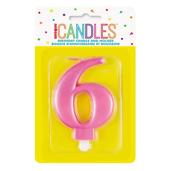 Metallic Pink Number 6 Birthday Candle.