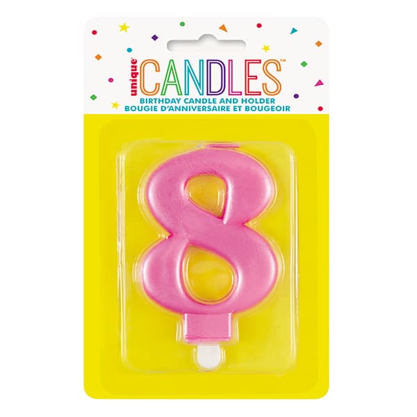 Metallic Pink Number 8 Birthday Candle.