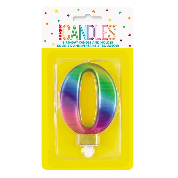 Metallic Rainbow Number 0 Birthday Candle.