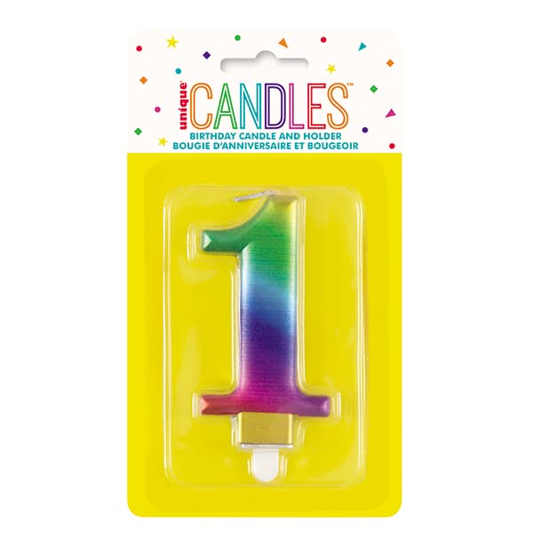 Metallic Rainbow Number 1 Birthday Candle.