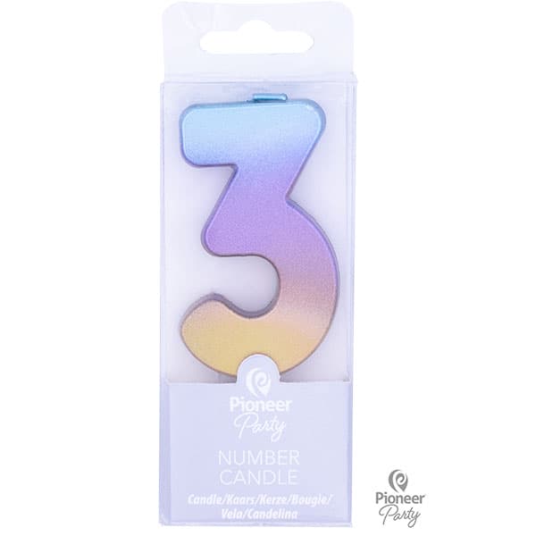 Rainbow Ombre Number 3 Candle.