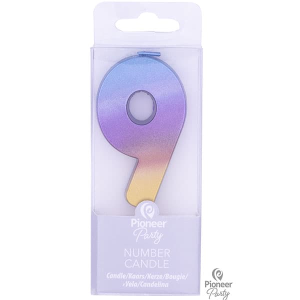 Rainbow Ombre Number 9 Candle.