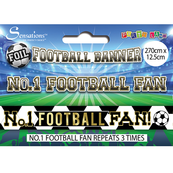 Black And White No1 Football Fan Foil Party Banner. This Football Banner Is The Perfect Finshing Touch For Your Football Themed Party.