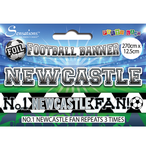 Black And White No1 Newcastle Fan Foil Party Banner. This Football Banner Is The Perfect Finshing Touch For Your Newcastle FC Themed Party.